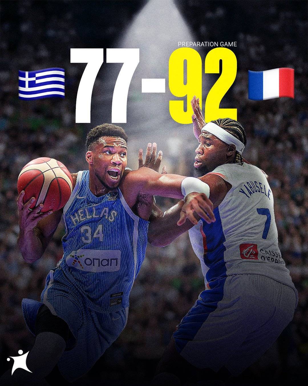 热身赛-字母哥空砍20分丽萨谢14+5 法国胜希腊